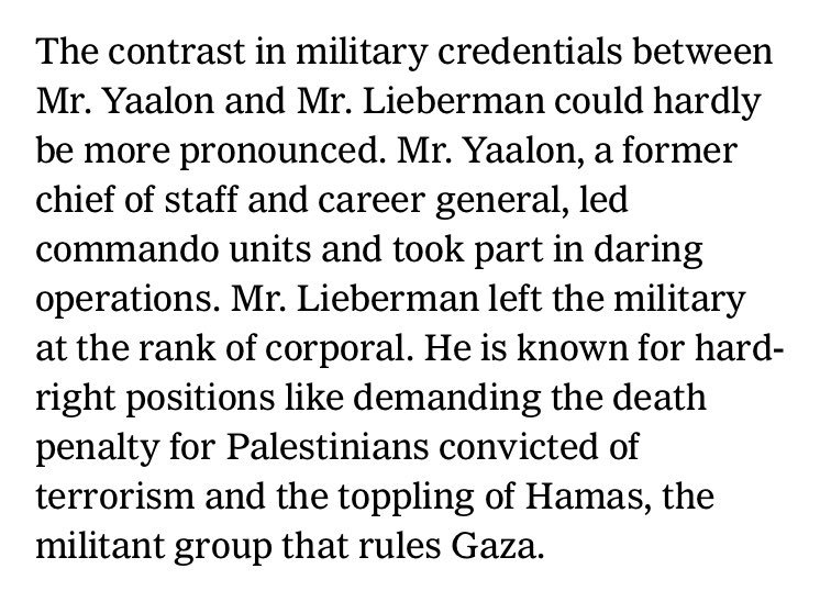 Ouch! "Yaalon former chief of staff & general. Lieberman left at rank of corporal".
