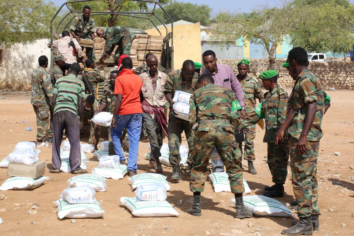 #Somalia,#AMISOM troops shared their food rations with the communities in their areas of operation this week in a laudable gesture of goodwill. 110 families including mothers & people with disabilities benefited from the drive.#Baidoapic.twitter.com/BFRyXKsOnI