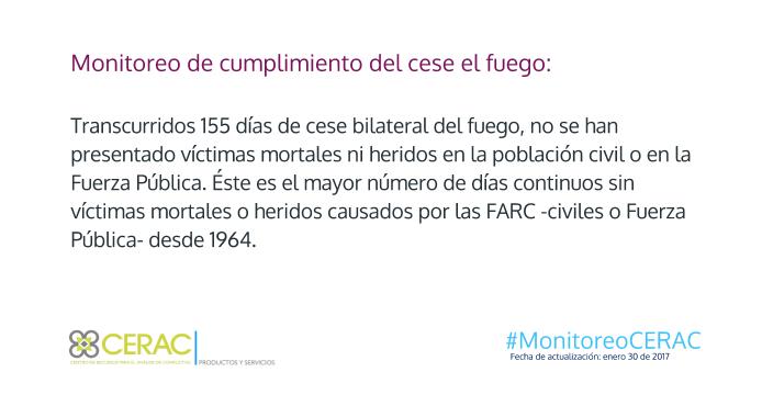 Celebro 155 días continuos sin víctimas de las Farc, sin embargo, exigimos pronto cumplimiento de todos los temas pactados.