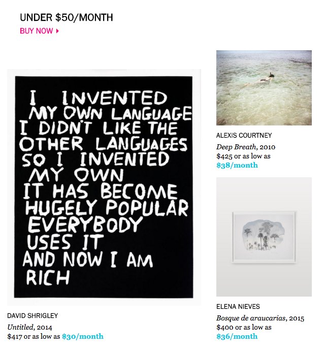 Buy New Art for Under $20/Month! With Artspace's secure financing program, own an artwork now and pay for it later