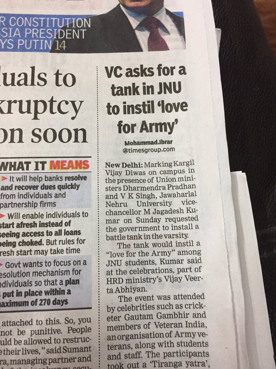I did not know one day a man like him wud be VC of JNU !!! What a disappointment !!! किताबों की जगह टैंक की वकालत करेगा VC !! हे ईश्वर !!https://twitter.com/timesnow/status/889333608489639938 …