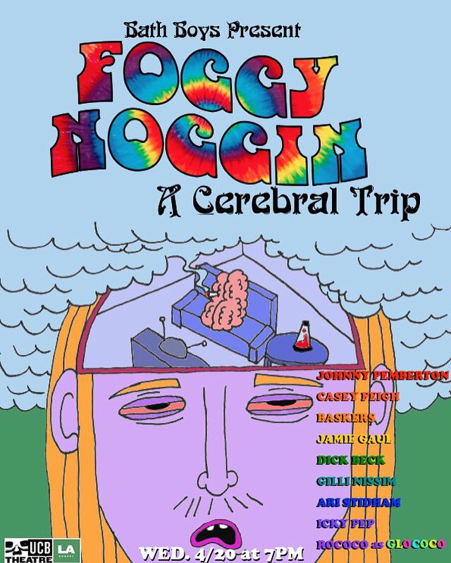 11. O shit Bath Boys doin our stoner show "Foggy Noggin" this 420 @ UCB! Gonna have gr8 guests. Plz come plz weed