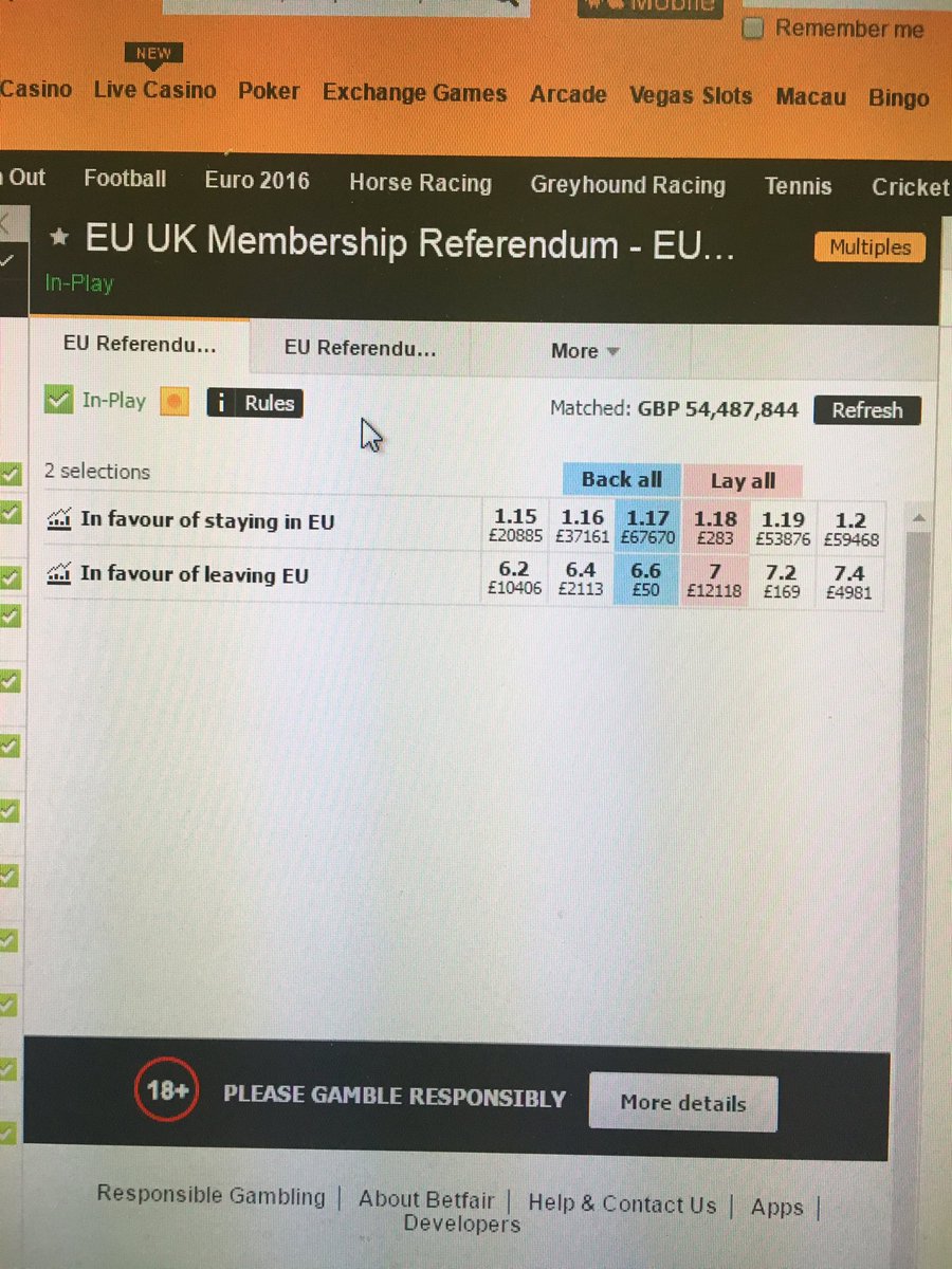 ובינתיים בבטפייר (בורסת ההימורים) ההסתברות להשארות בריטניה באיחוד האירופי כ 85%.pic.twitter.com/1INxfgXn1Q