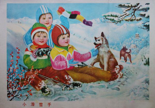 “Little Skiers” is a poster by Shi Shiming published by People’s Sports Publishing House of China in 1984 (Courtesy of Guo Lei).
