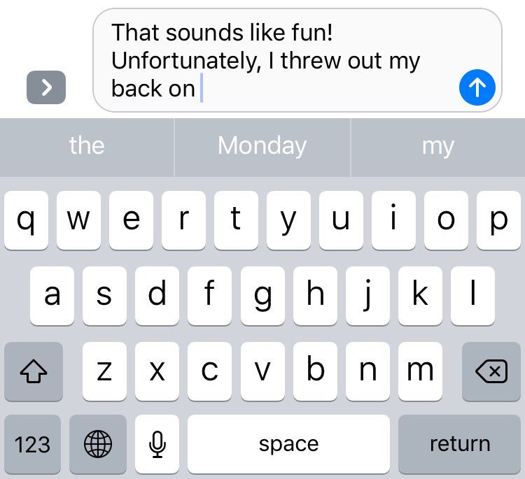 Apple’s AI game is strong. It already remembers I threw out my back on Monday & offers it as a QuickType suggestionpic.twitter.com/xIabymWSuV