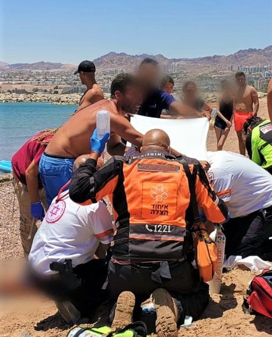 חובשי איחוד הצלה סניף אילת בהחייאה בדקות אלו על צעיר שנמשה מהמים בסמוך למרינה באילת (החוף הנפרד) ללא דופק ונשימה. בשלב זה מצבו מוגדר אנוש.pic.twitter.com/ftJjWSM6Hs