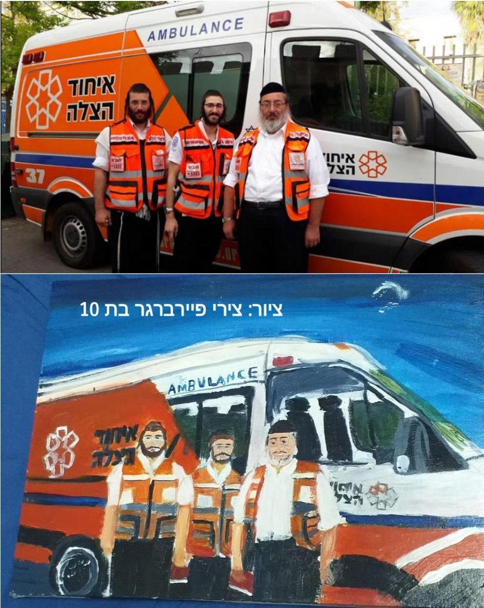 מעורר השראה: צירי פיירברגר בת העשר, ציירה דיוקן של אביה ושני אחיה הגדולים, אשר מתנדבים ברשת המתנדבים להצלת חיים של איחוד הצלה.pic.twitter.com/ZW63khT1uo