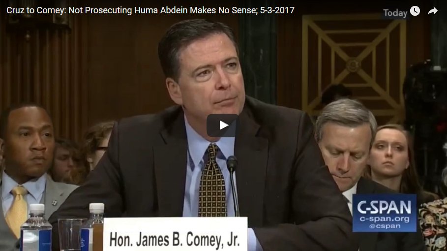 WATCH: Cruz SLAMS Comey For Not Prosecuting Hillary Aide Huma Abedin http://dld.bz/fFhPk
