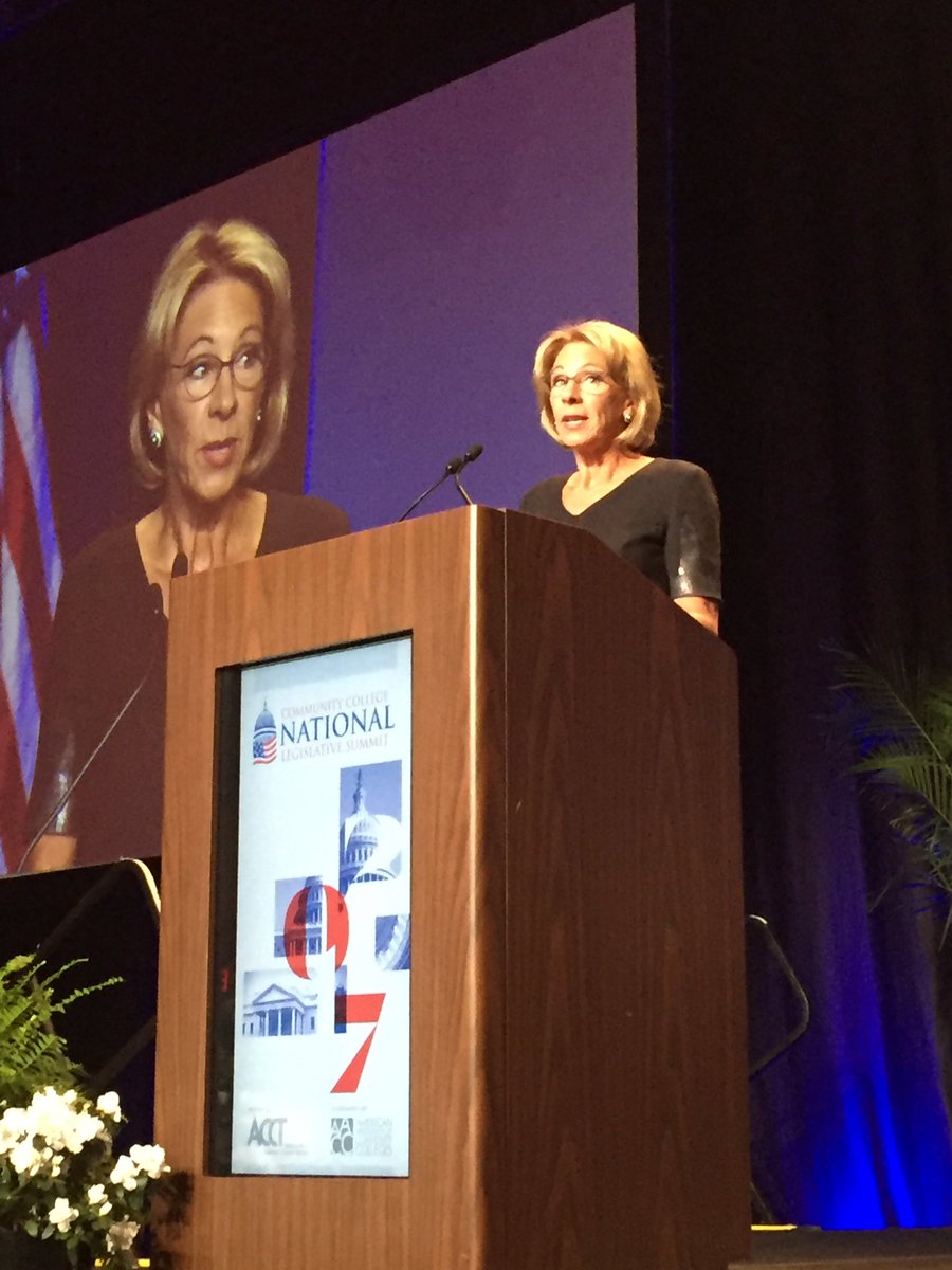 @BetsyDeVos recognizes community colleges' vital role in connecting job seekers with meaningful work.#NLS2017pic.twitter.com/W6njGyNyYk – Washington Marriott Wardman Park ರಲ್ಲಿ