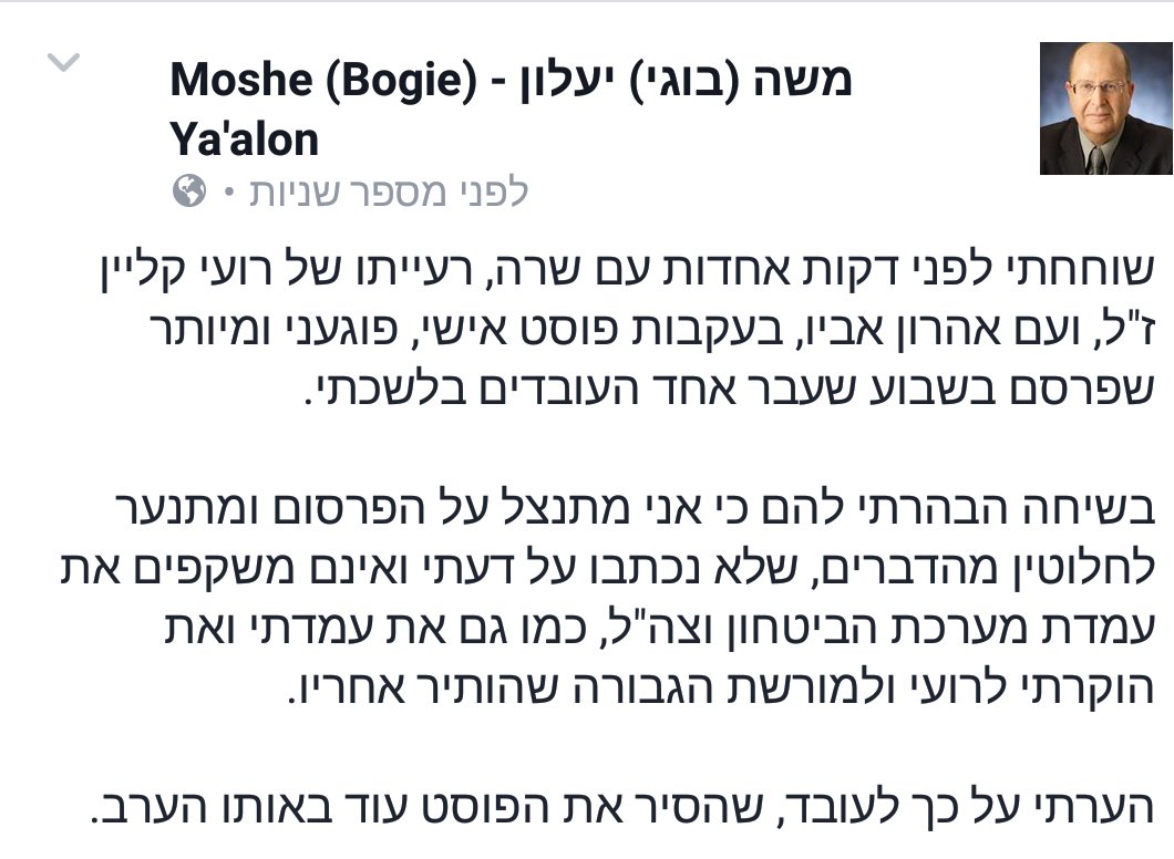 Moshe (Bogie) Ya'alon, former Chief of Staff of the Israel Defense Forces and former Israel's Defense Minister.