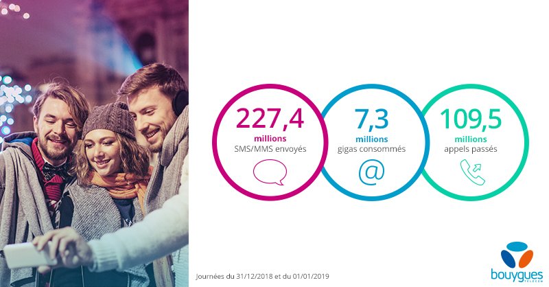 Cette année encore le réseau Bouygues Telecom vous a permis de partager vos vœux avec vos amis et vos proches le soir du réveillon ! Toute l'équipe Bouygues Telecom vous souhaite une très belle année 2019