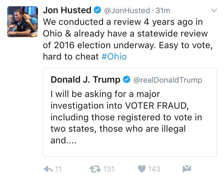 2. Ohio's Republican Secretary of State responds to Trump: "Easy to vote, hard to cheat"pic.twitter.com/rQ8hidzRkN