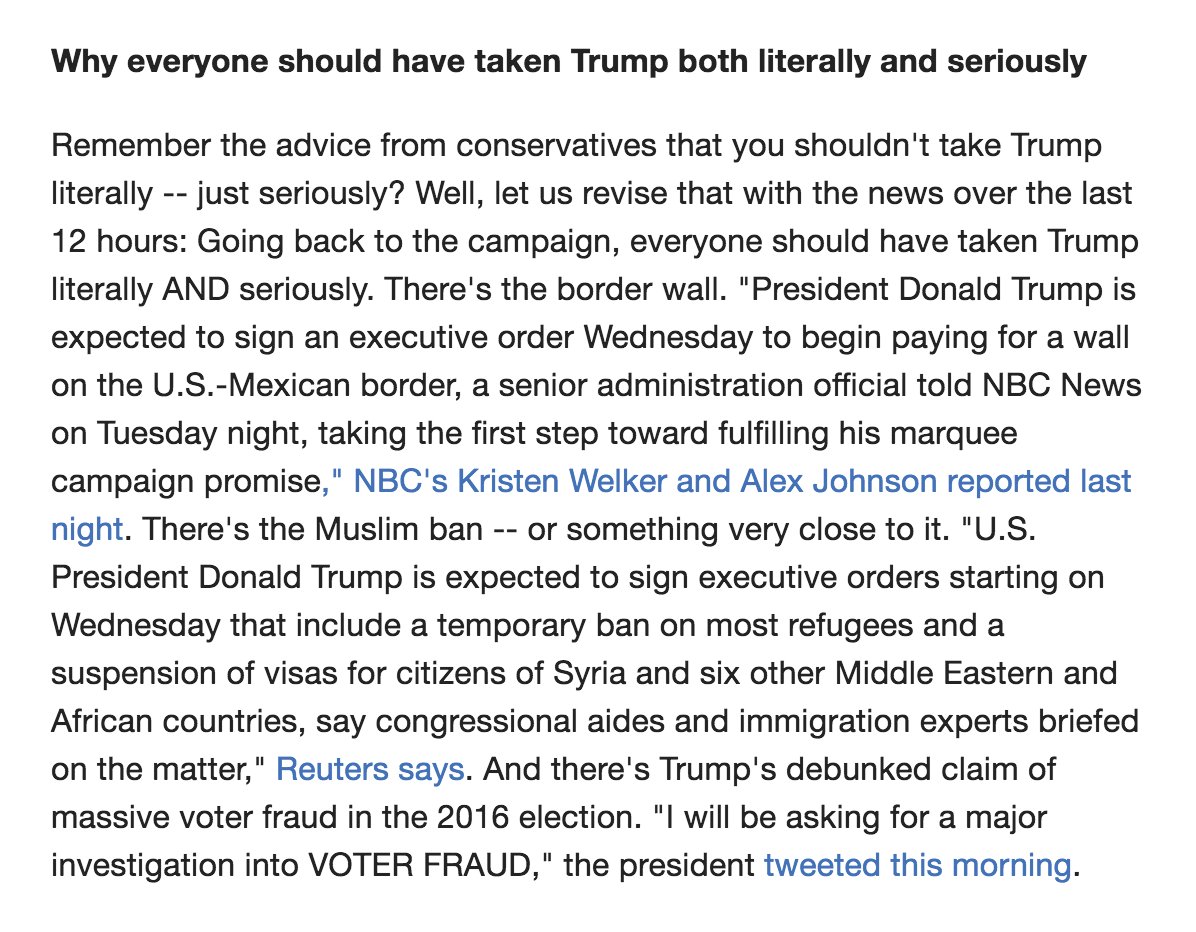 Why Trump needs to be taken both literally AND seriously: every word a president says matters http://nbcnews.to/2jRix16 via
