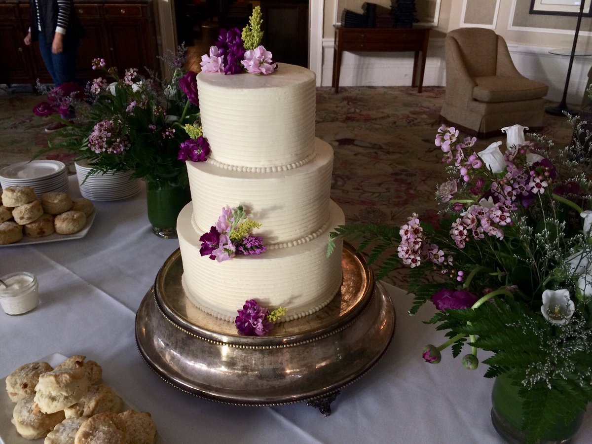 Pastry Chef Annie's royally inspired wedding cake was served this morning at our Wedding Viewing Breakfast. It is lemon and elderflower, just like Meghan's cake flavor choice. Congrats to the newlyweds!