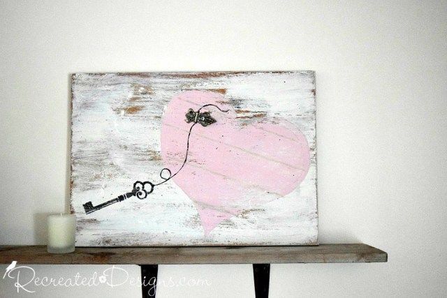 Make some rustic Valentine's Day art w/ a salvaged board, paint & a piece of vintage hardware! via
