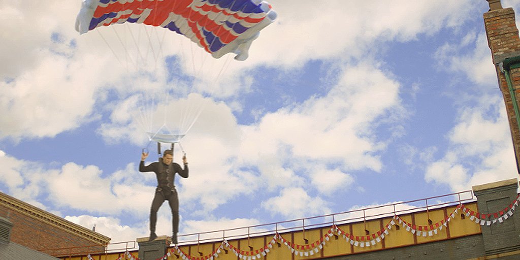 What an entrance! But where is the Milk Tray Man planning on leaving his tasty box of chocs?