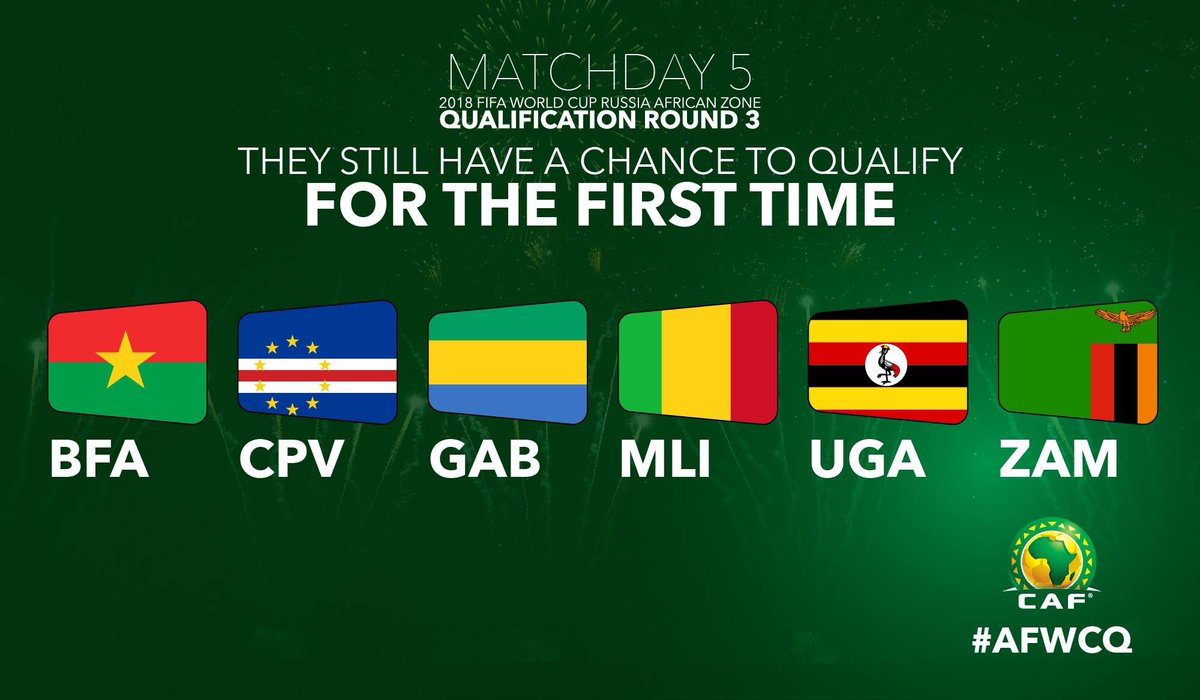 @FIFAWorldCup 5 teams still have the chances to be there for the first time in World cup history#AFWCQpic.twitter.com/2EPNSn4WMd