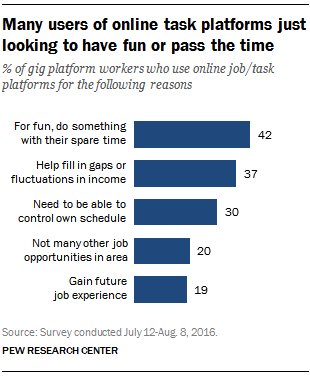 42% of Americans who have made money in the “gig economy” in the last year said they did so “for fun” http://pewrsr.ch/2ljTwv0 pic.twitter.com/BVHs7qRzWB