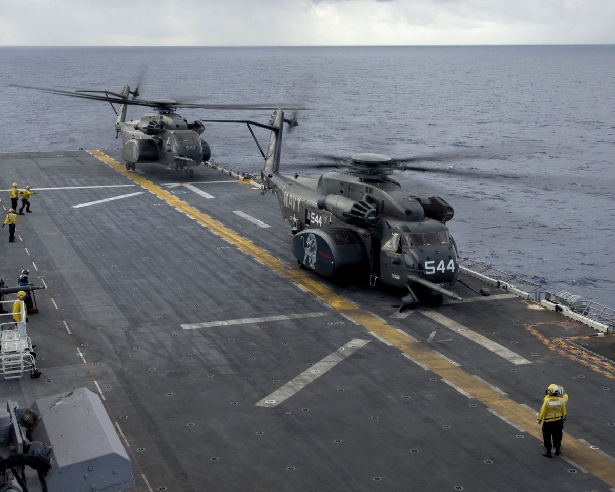 helos of Mine Countermeasure Squadron 14 (HM-14) helping out in Rico, seen Mon flying from USS LHD1