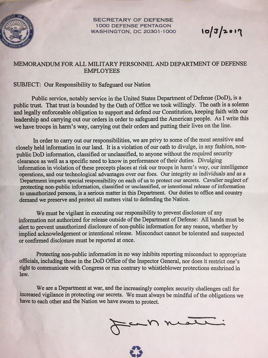 God bless whoever leaked this DoD memo about not leaking things. Awesome.