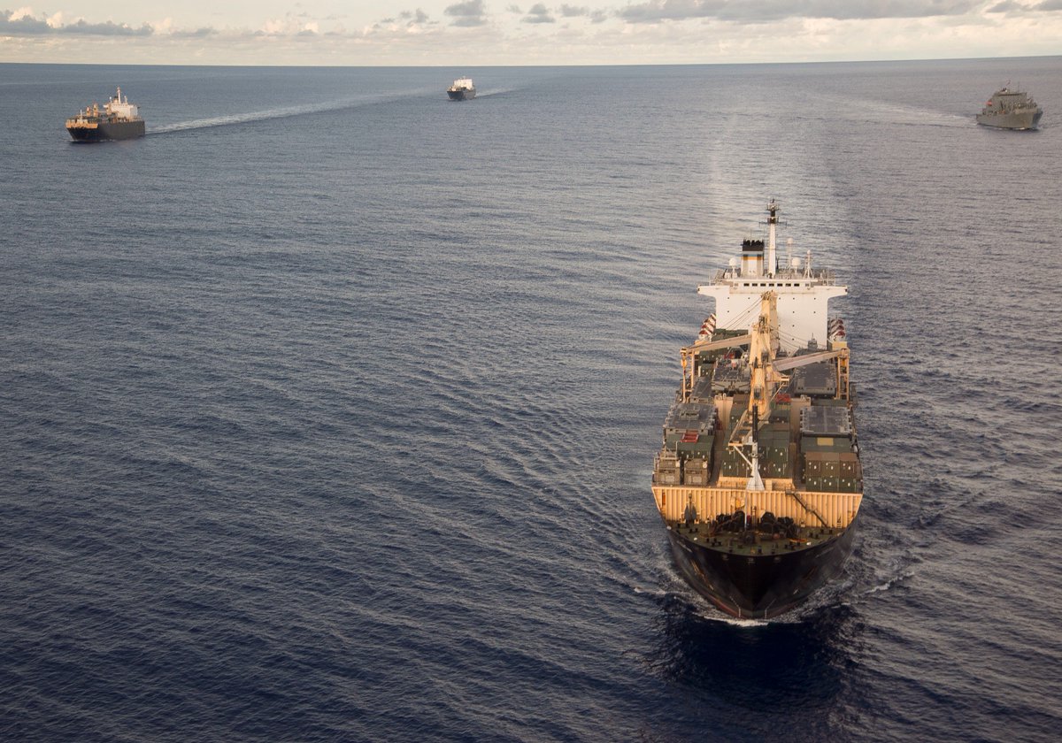 They may not be sexy, but this is sea power too: US /MSC's Maritime Prepositioning Squadron 3 in group sail off on 4 Oct