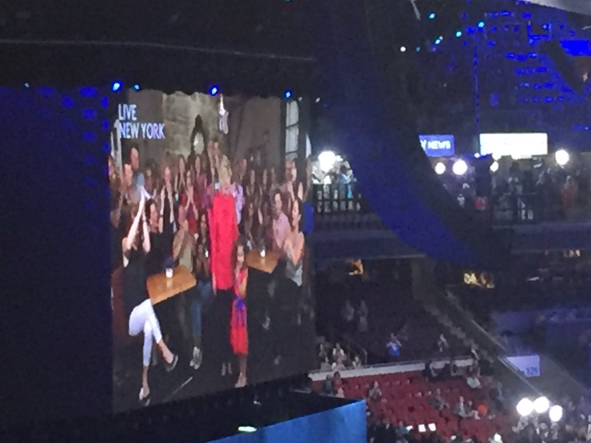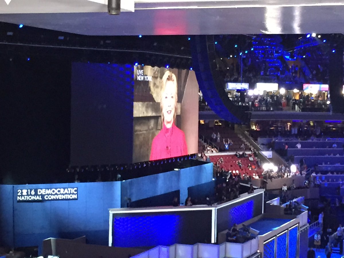 #BREAKING: .@HillaryClinton makes surprise appearance via satellite at#DemsInPhilly