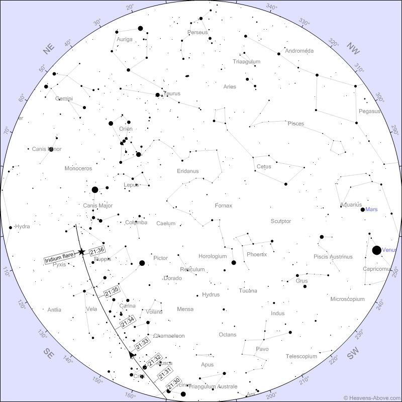 6. There'll be an Iridium Flare at 21:36pm. More info on what an Iridium Flare is: