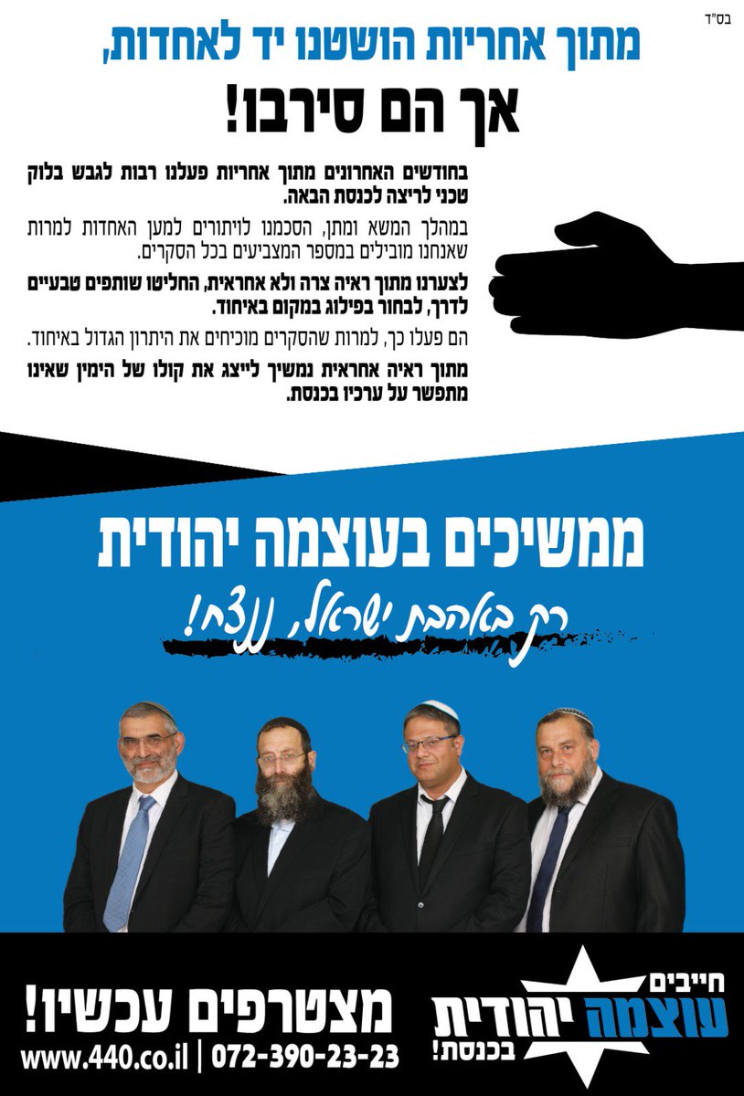 בכנסת הבאה תהיה מפלגת ימין אמיתי אחת - עוצמה יהודיתpic.twitter.com/Hpsb2EEPB9