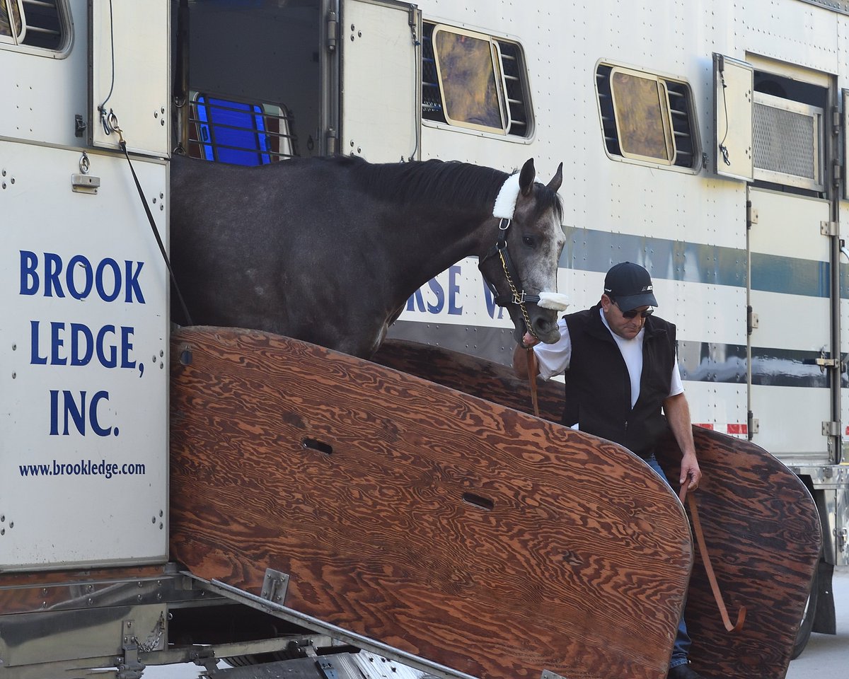 #Arrogate arrives@GulfstreamPark for the@PegasusWorldCup@JuddmonteFarms Bob Baffert@coglianesephoto LeslieMartinpic.twitter.com/SJRZNJCbIE