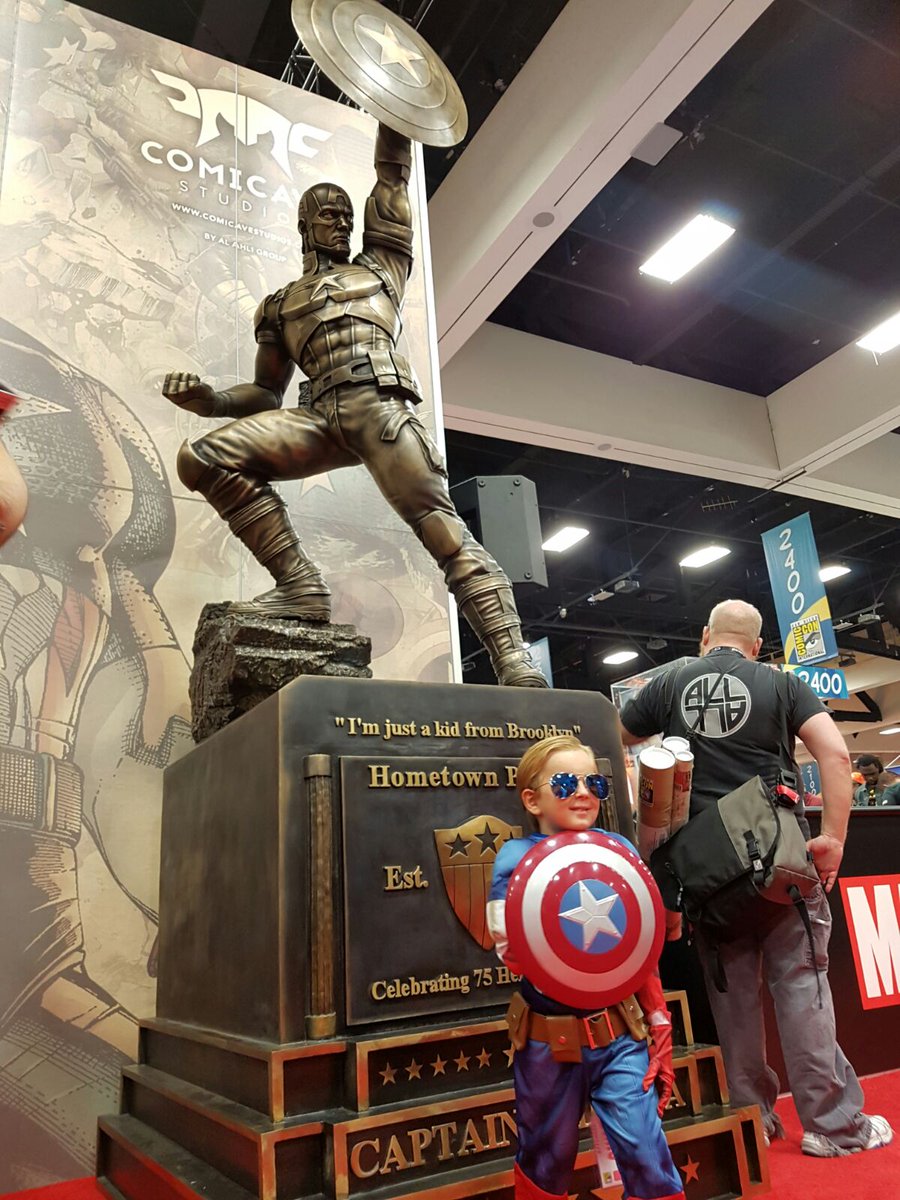 15. Cosplayer @norcal_cap looking epic with our Captain America Tribute Statue. Spot him at SDCC today. Happy 75th...