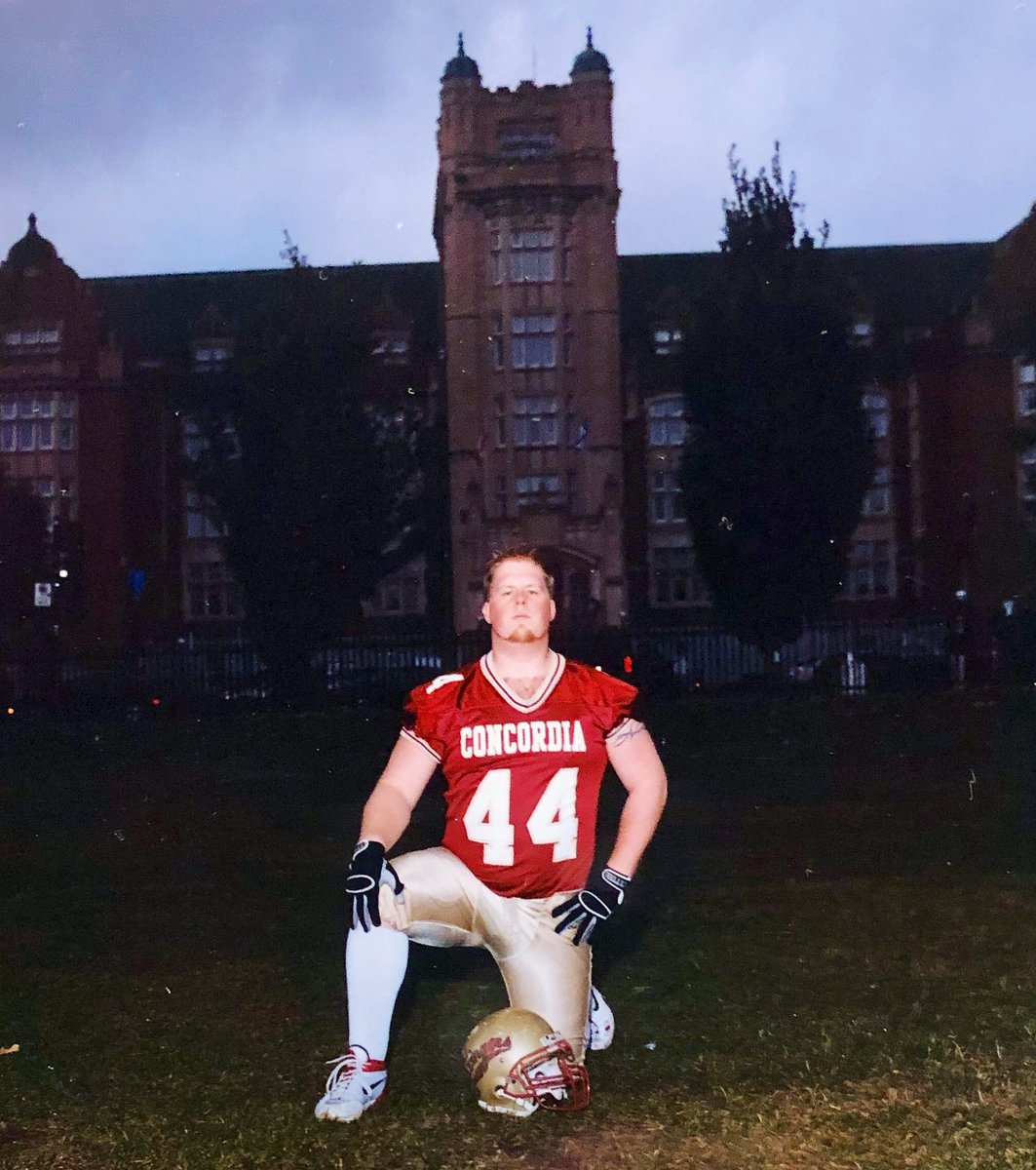 STINGER ARCHIVES: Once a Stinger, always a Stinger. Former Concordia centre Brad Collinson posing in front of the Administration Building (Loyola Campus) during his university playing days. Tomorrow, he will patrol his alma mater's sideline as head coach for the first time.pic.twitter.com/w8WX9SHG26