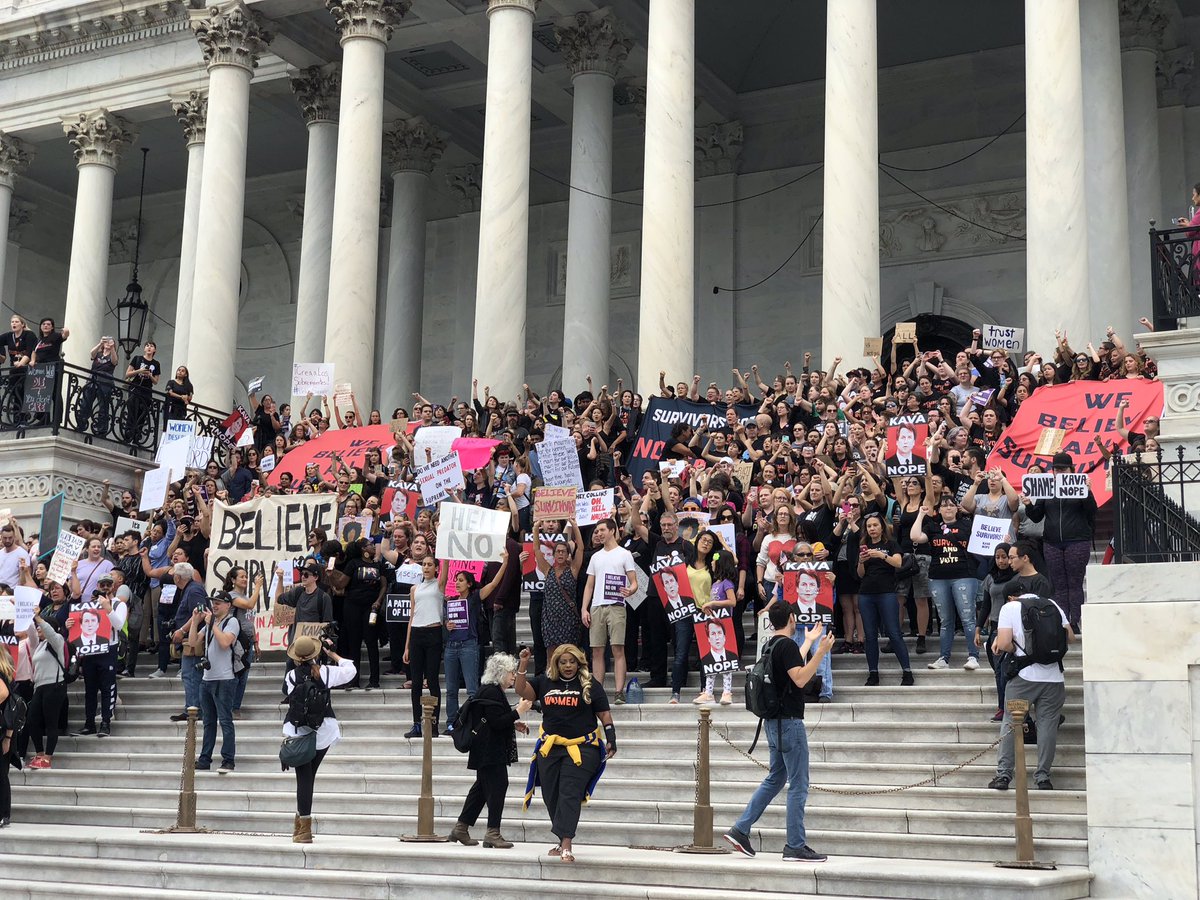 If you caught our livestream on facebook, you know we just organized thousands of women, survivors, and allies to flood the Capitol, climb over police barriers, and take over the Capitol Steps. We estimate over 250 were arrested.