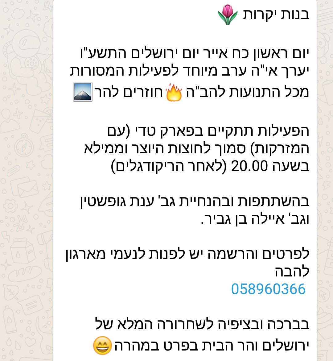 ביום ד הבא,בשעה 17:30,ניפגש לשיחה עם הרב ישראל אריאל ולמפגש פעילים!מקום-סניף אריאל בנות גב"ש,רחוב בזל 3,י-ם! בנים:0507984440 בנות:0538275862