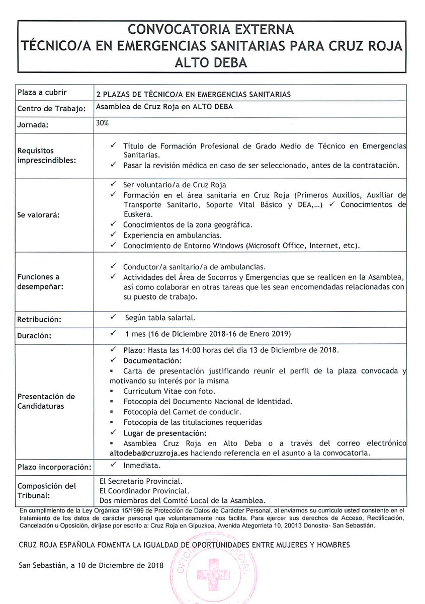 2 plazas de técnico/a en emergencias sanitarias para #AltoDeba