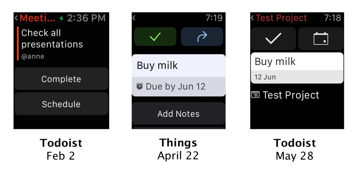 If you upgrade to watchOS 2.2, Things’ complications won’t display properly. Multi-colored Modular should work. Already reported to Apple.