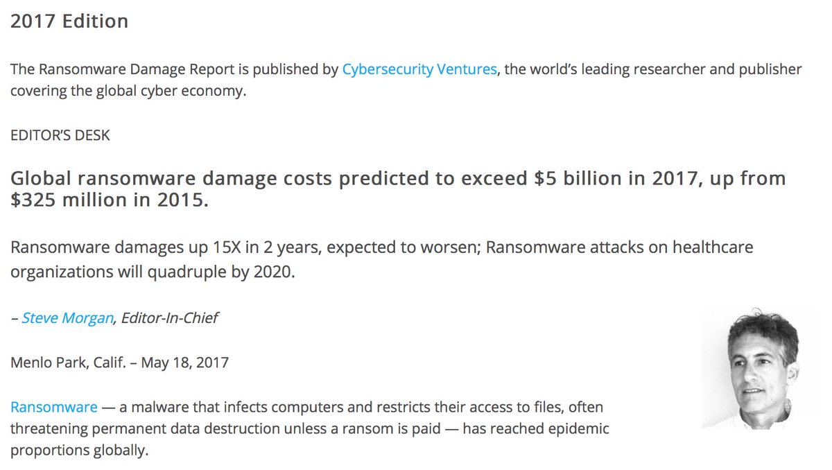 #Ransomware damage costs predicted to exceed $5 billion in 2017, up from $325 million in 2015 https://cybersecurityventures.com/ransomware-damage-report-2017-5-billion/ …pic.twitter.com/jFtOP239vy