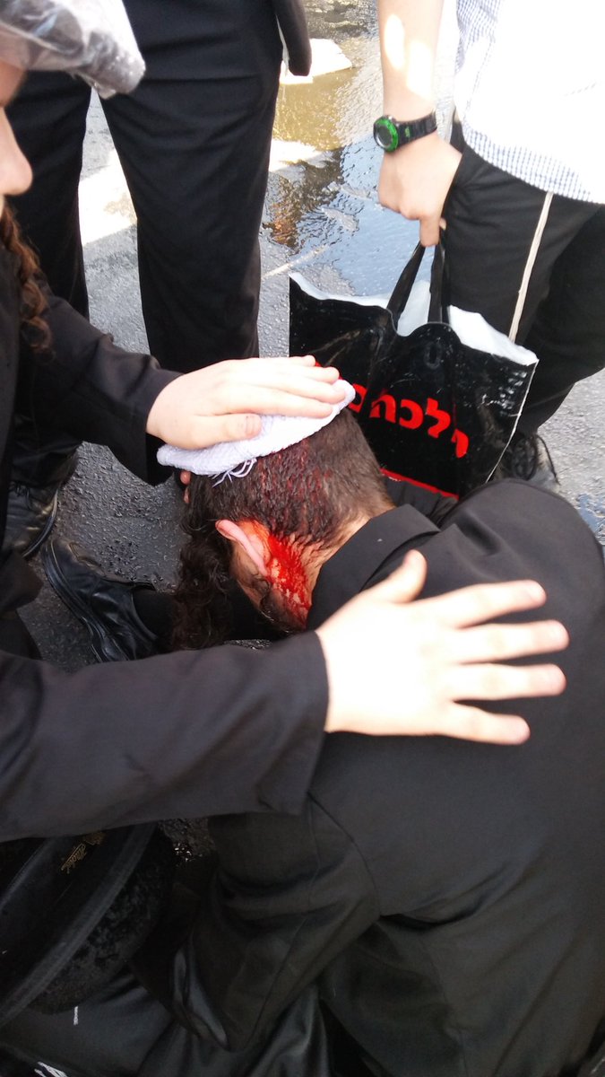 מחאת העדה החרדית. שוטר יס״מ מפיל בברוטאליות מפגין חרדי העומד בצומת.pic.twitter.com/xYl4sn6uKp