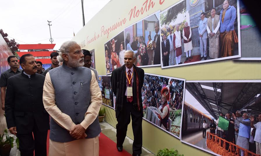 @narendramodi going around at the exhibition of achievements of the North East, in Shillongpic.twitter.com/ydnpxI7WOv