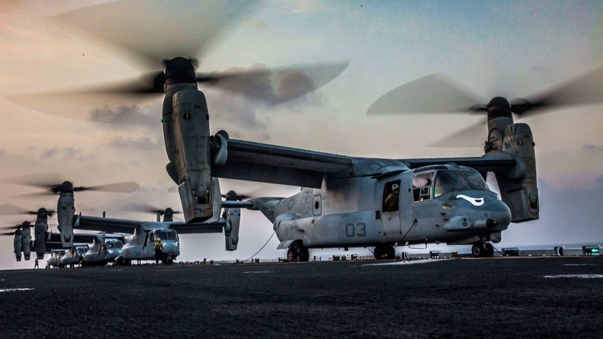 #SquadGoals.@USMC MV-22 Ospreys prepare to takeoff from the flight deck of#USSMakinIsland.pic.twitter.com/AcLhFBOR38
