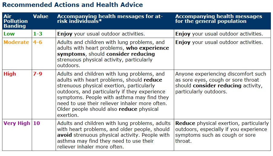 For health advice during periods of elevated air pollution please check UK-Air http://goo.gl/OHlQC9