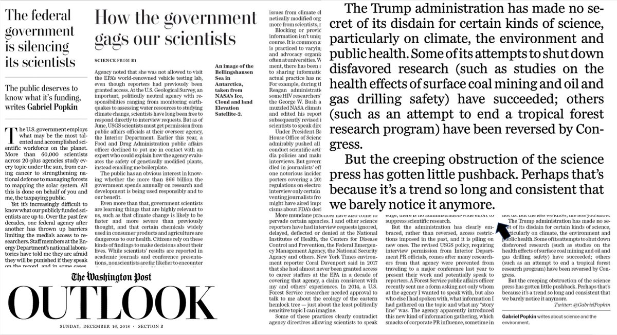The scandalous suppression of science in the United States, which has "gotten little pushback" https://www.washingtonpost.com/outlook/trump-doesnt-want-the-public-to-know-what-government-scientists-are-doing/2018/12/11/b9ff5770-e69e-11e8-a939-9469f1166f9d_story.html?utm_term=.8443c7fa3e50 … by