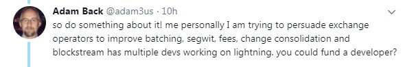 Let’s take a couple steps back and remind ourselves that the huge fees are only there because of an artificial block size cap that was put in place to prevent spam in the early days with the intention of being removed in time, never being removed by Core Devs to promote their L2https://twitter.com/binarybits/status/943230155463516165 …