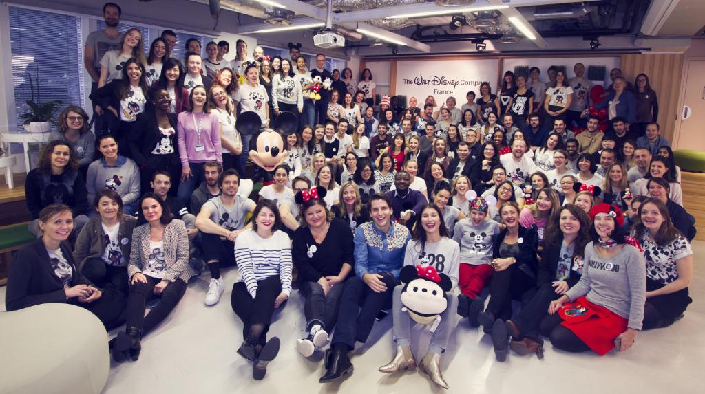 Photo de famille de l’équipe Disney France en ce jour d’anniversaire de Mickey !