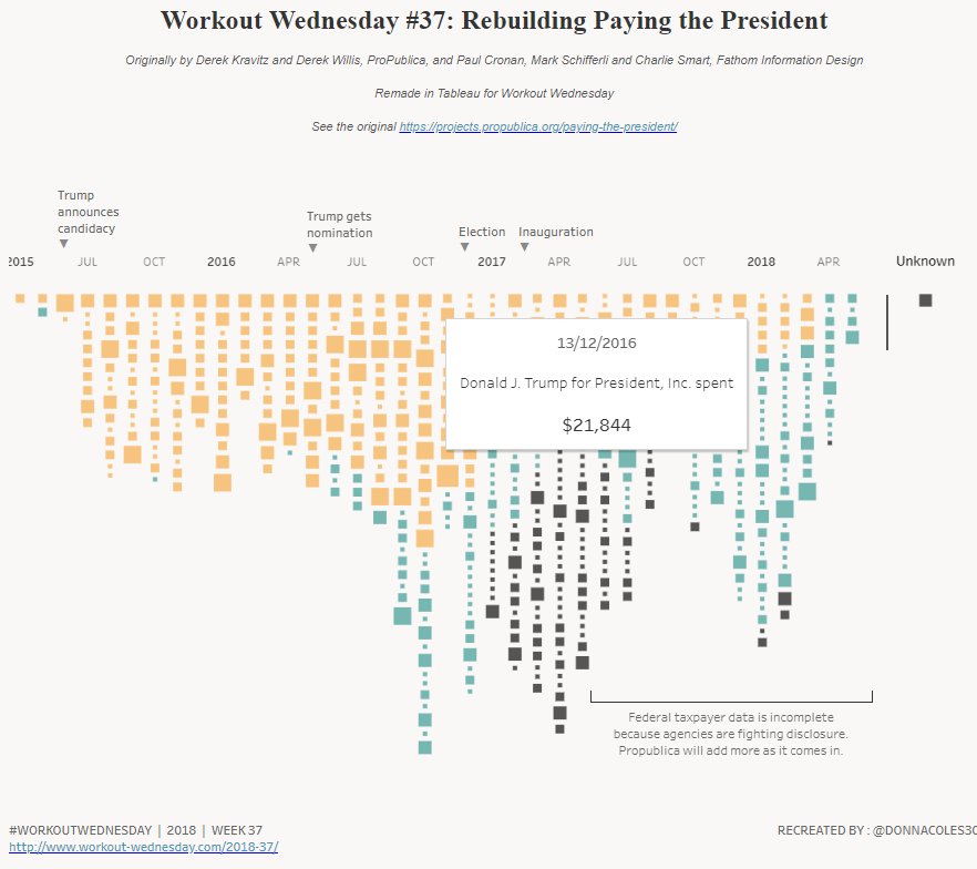 #WorkoutWednesday | Week 37 - Recreating the#MakeoverMonday Paying the President dataset in#Tableau. It looks similar but I'm sure doesn't match@lukestanke's expectations. https://tinyurl.com/ybe4djug pic.twitter.com/FfX5gDW3k6