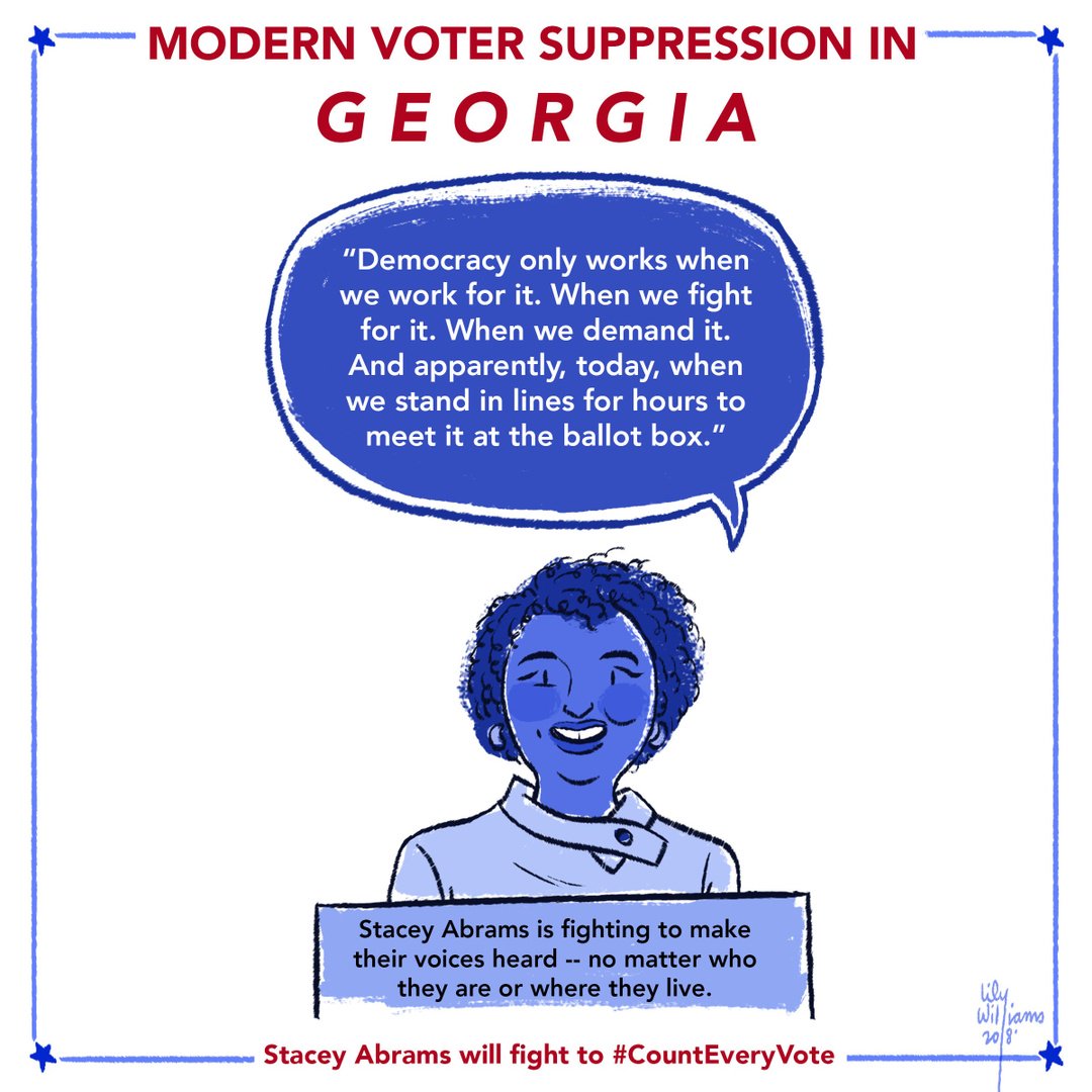 Waiting 4 hours to vote. Broken machines. Students, Georgians with disabilities and seniors never receiving the absentee ballots they requested. Our democracy shouldn't look like this. Georgians deserve better, and we will continue to fight to . (Art by ).