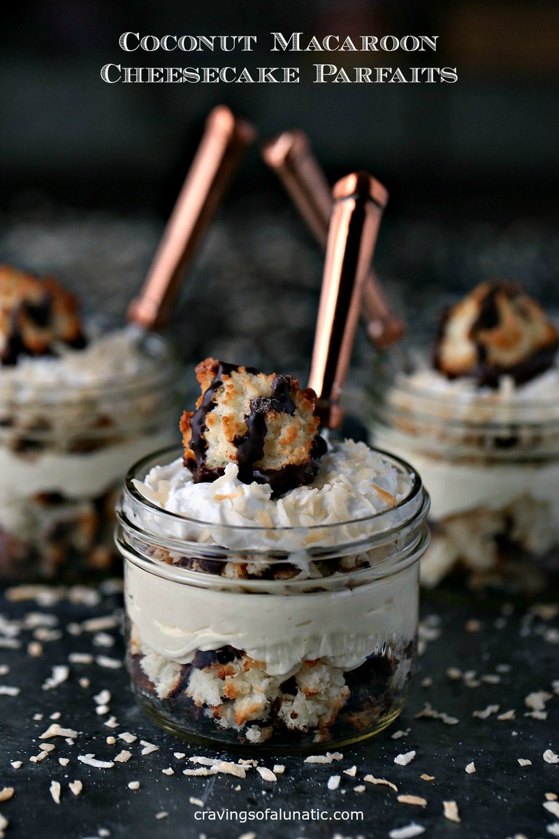 No bake coconut macaroon cheesecake parfaits from