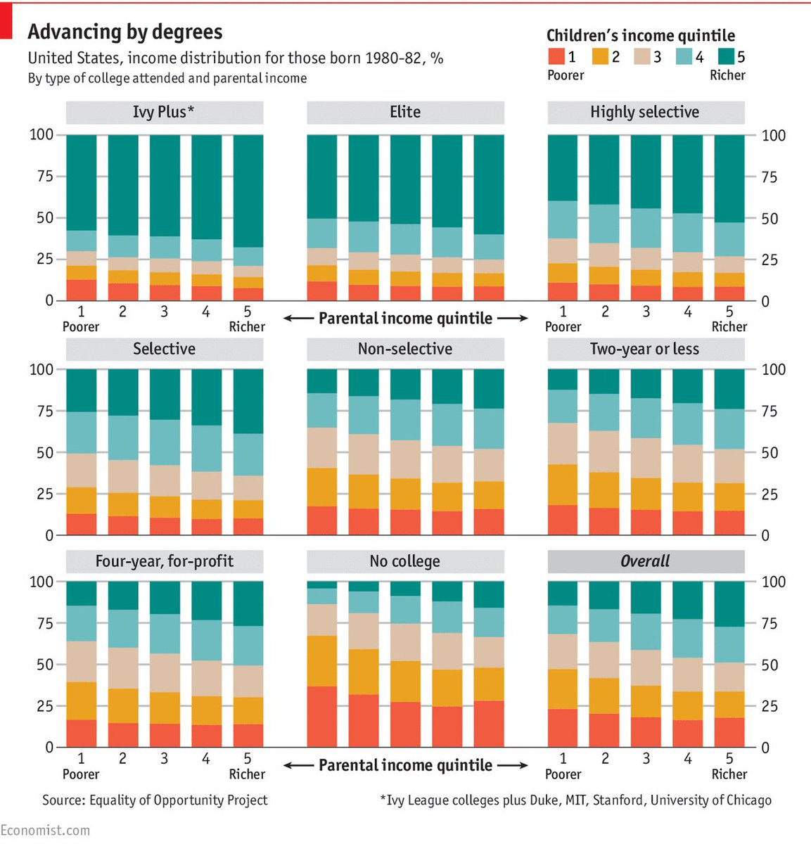 How colleges affect social mobility in America http://econ.st/2kR5wUi pic.twitter.com/67AxYkiGtL