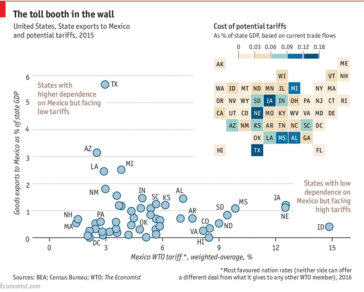 Farmers and Texans would lose most from barriers to trade with Mexico http://econ.st/2lfTTqc pic.twitter.com/D6BewM7MAu