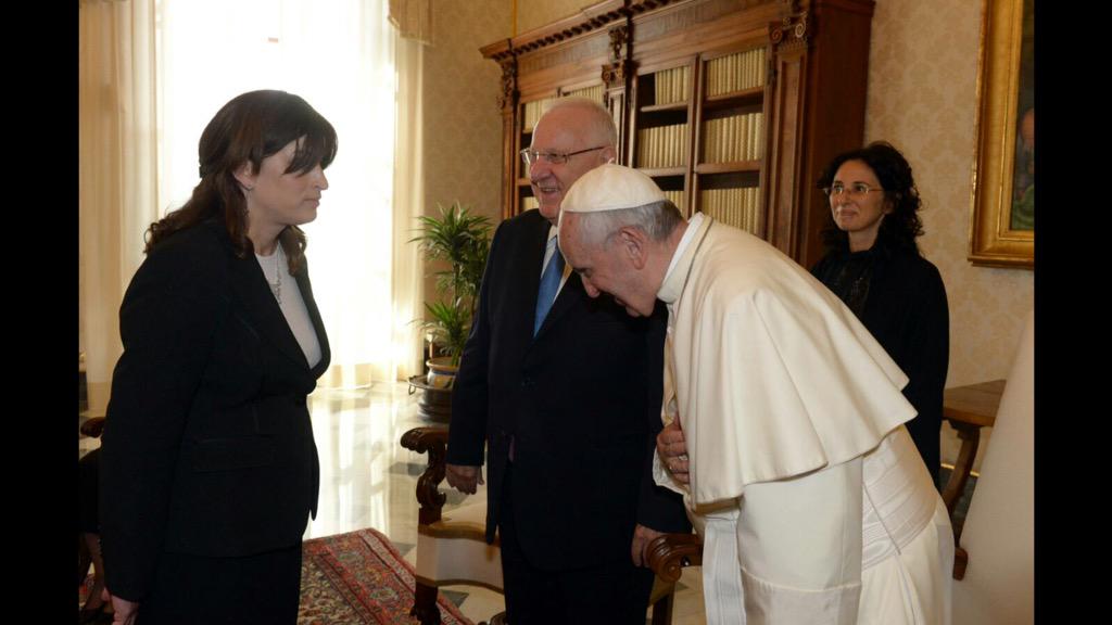 קידוש ה׳: רבקה רביץ, רל״ש הנשיא החרדית, הסבירה לאפיפיור שלפי ההלכה אסור לה לקוד בפניו. פרנסיסקוס כיסה הצלב וקד בפניה.pic.twitter.com/zZ6cDdA1tU