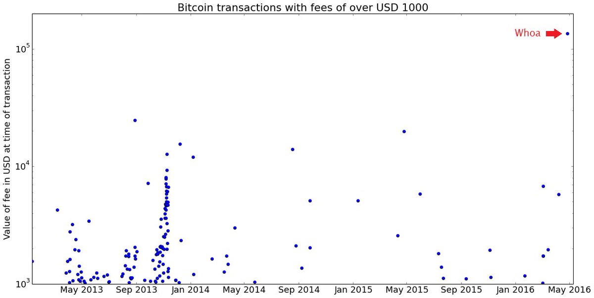 2. The recent tx with a $137,000 fee was bonkers, but there have been ~150 transactions with a fee over $1,000.